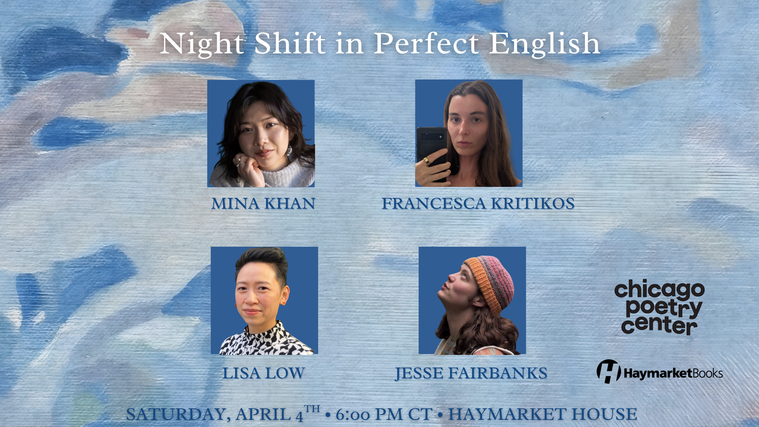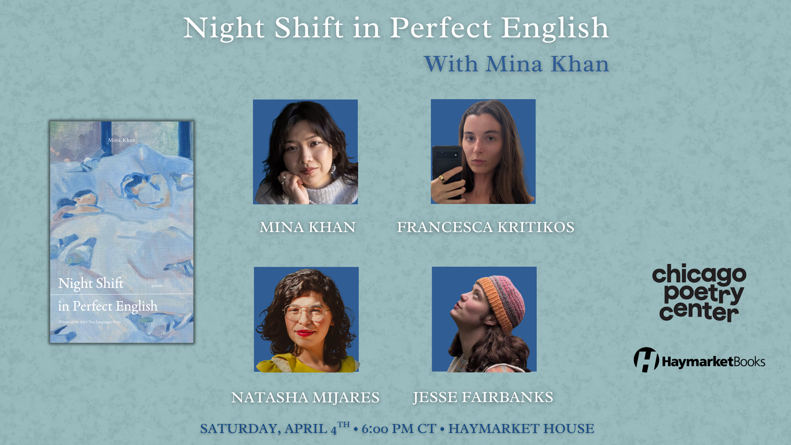 2024 Winner of the Two Languages Book Award, Mina Khan’s debut collection Night Shift in Perfect English is a tender, album-like retelling of the immigrant family post-American Dream. Drawing upon her Korean-Pakistani heritage, Khan discusses the NYC bodega in a gentrifying neighborhood, the aging body, and a rapidly deteriorating climate; Everyday violences-and the vivid joys that persevere.