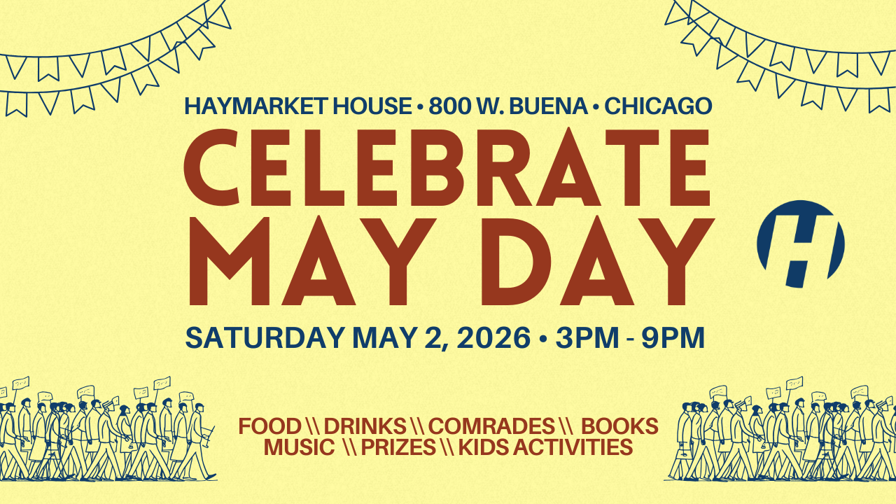 Enjoy an afternoon of camaraderie, delicious food (including vegetarian and vegan options), and refreshments as we celebrate May Day and our vibrant living tradition of resistance to tyranny, exploitation, and oppression. In this volatile political moment we are more grateful than ever for our Haymarket House community, and we look forward to gathering with you.